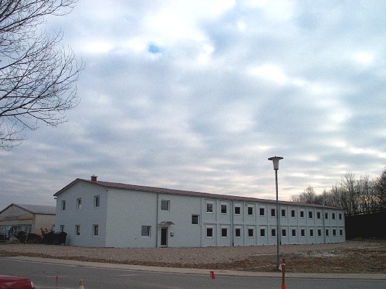 Vorfahrtsstraße nach links in Richtung Stadtmitte folgen. Linker Hand befinden sich zunächst ein Aldi-Markt, ein Fahrzeugwaschplatz, eine Autowerkstatt und anschließend Worker’s Home®.